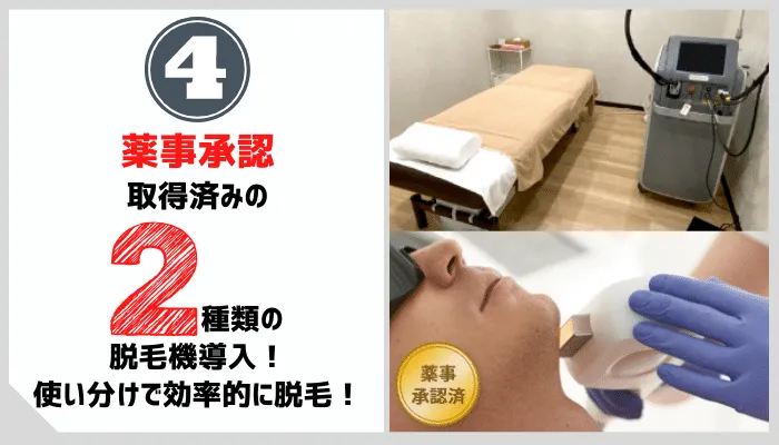 おすすめ理由4.薬事承認取得済みの2種類の脱毛機導入!使い分けで効率的に脱毛!