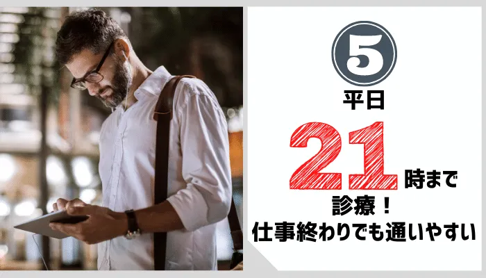 おすすめ理由5.平日21時まで診療!仕事終わりでも通いやすい