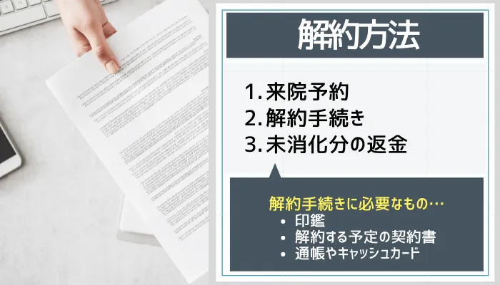 解約したい場合は、まず解約手続きのための来院予約をする。必ず電話で解約したい旨を伝えておこう。その際、必要な持ち物などを確認しておくと安心だ。