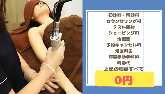 脱毛料金以外は、初診・再診料、シェービング代、予約キャンセル、そして麻酔代もすべて無料で、追加費用ナシで通うことができます。