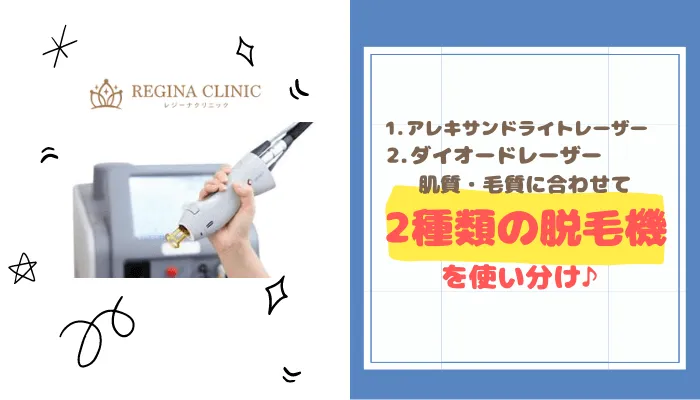 『レジーナクリニック京都四条河原町院』では、肌質や毛質に合わせて2種類の脱毛機を使い分けています。