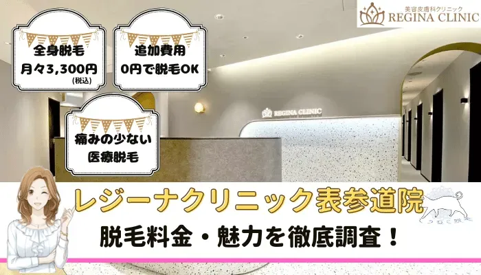 結論を先に言うと、『レジーナクリニック表参道院』は、月々3,300円から全身脱毛を受けられて追加費用ゼロで脱毛できる優良クリニックです。