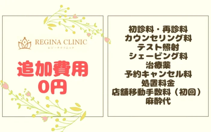 レジーナクリニックは、以下の追加費用が全て無料になります。