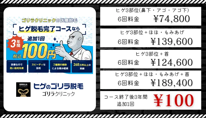 | ゴリラクリニック | 学割 | 学生の方は学生証提示で10%OFF |