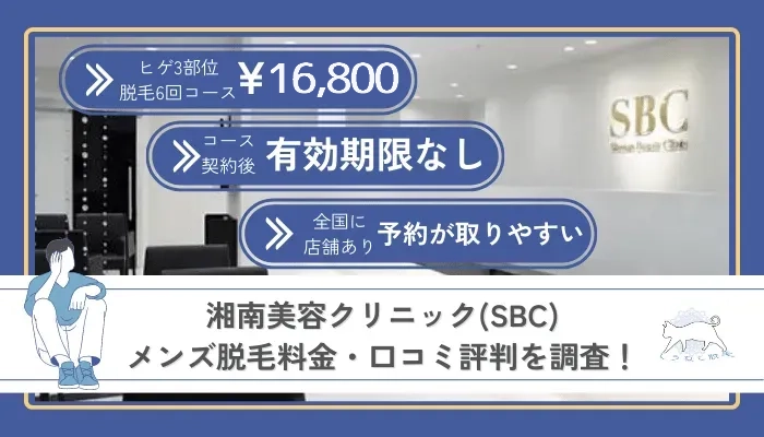 当記事では、湘南美容クリニック(SBC)のメンズ脱毛に関する情報を徹底的にリサーチしたため、最後まで読めば以下の情報を全て知ることができる。