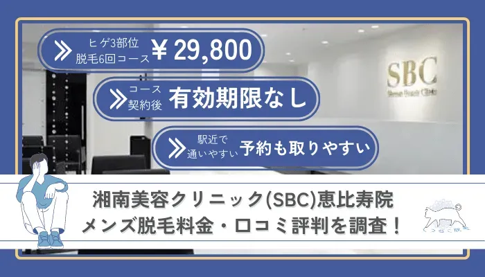 湘南美容クリニック(SBC)恵比寿院のメンズ脱毛料金・口コミ評判を調査!機械の効果や5つのおすすめ理由を紹介