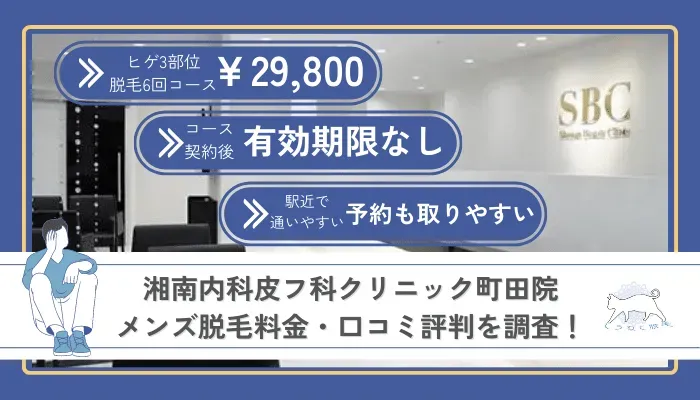 当記事では、小田急線町田駅から徒歩1分で通える湘南内科皮フ科クリニック町田院のメンズ脱毛に関する情報を徹底的にリサーチしたため、最後まで読めば以下の情報を全て知ることができる。