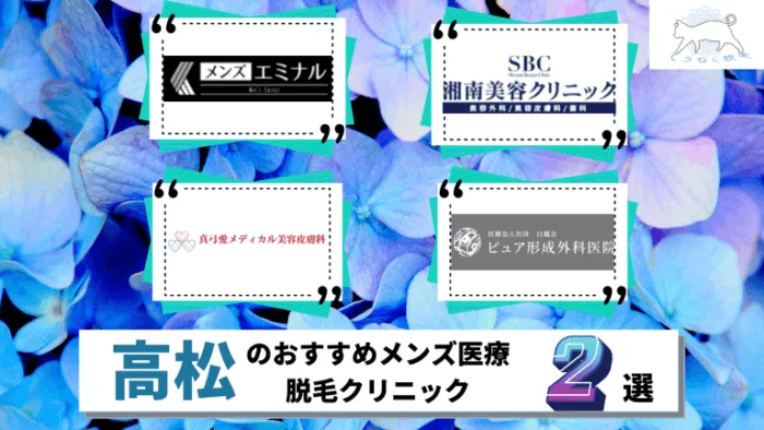今回、しろねこ脱毛では高松でメンズ医療脱毛を受けられるクリニック全4院の髭脱毛・全身脱毛・VIO脱毛・腕脱毛・脚脱毛の料金や特徴を徹底比較しました。