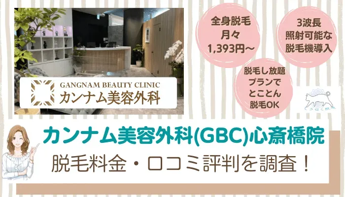当記事ではカンナム美容外科(GBC)心斎橋院の脱毛料金や口コミ評判、予約の取りやすさについての特徴などを調査しました。