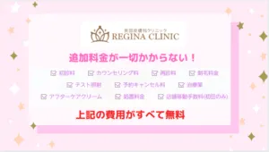 - レジーナクリニック上野院⇒麻酔を含む追加費用が全て無料。痛みを徹底的に抑えた医療脱毛が受けられる。