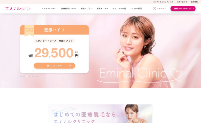 ハイジニーナ(無毛型)の場合は、8~10回以上通うのが一般的です。