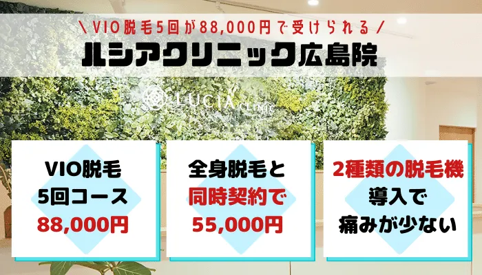 ルシアクリニック広島院:VIO脱毛5回が88,000円で受けられる
