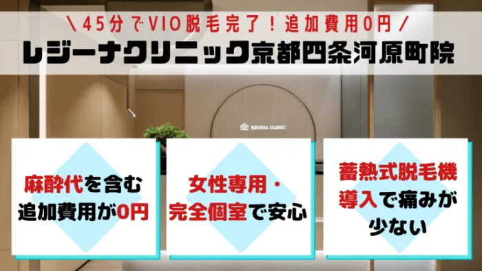 京都の医療脱毛クリニックを調査した結果、VIO脱毛を受けるなら『レジーナクリニック京都四条河原町院』がおすすめです。