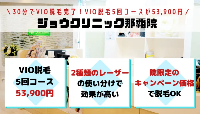 ジョウクリニック那覇院の詳しい脱毛料金や追加費用についてさらに詳しく知りたい方は、関連記事『ジョウクリニックの脱毛料金と評判を徹底調査』した記事も参考にしてみてくださいね。