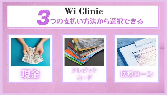 ウィクリニックでは、3つの支払い方法を選択できます。