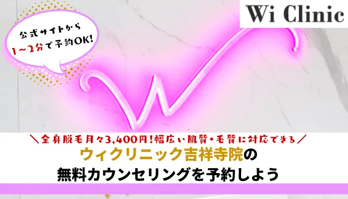 当記事では『ウィクリニック吉祥寺院』の脱毛は実際にいいのか、追加費用がかからないのか徹底調査を行いました。