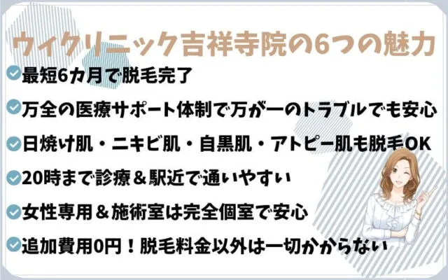ウィクリニック吉祥寺院』には、料金のほかに以下のような6つの魅力があります。