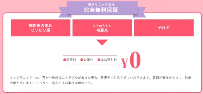 ウィクリニック吉祥寺院』では、万が一肌トラブルが起きてしまった場合の治療代やお薬代を無料でサポートしてくれます。