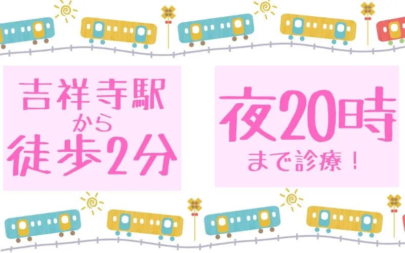 ウィクリニック吉祥寺院』は、20時まで診療しており、忙しい方でも通いやすいクリニックです。