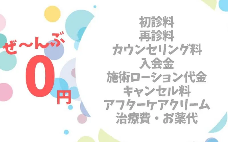 ウィクリニック吉祥寺院』は追加費用0円であることも魅力です。初診料や再診料、カウンセリング料などを始めとして、先ほども紹介した万が一の治療費・お薬代、入会金やキャンセル料も0円です。