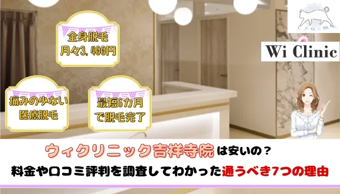 『ウィクリニック吉祥寺院』は月々[affi id=622]から全身脱毛ができる料金が安いおすすめクリニックです。